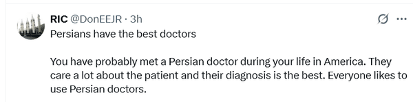 ایرانیان بهترین پزشکان را دارند. احتمالاً در طول زندگی خود در آمریکا با یک پزشک ایرانی ملاقات کردهاید. آنها به بیمار بسیار اهمیت میدهند و تشخیص آنها بهترین است. همه دوست دارند از پزشکان ایرانی استفاده کنند.