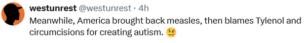 این در حالی است که آمریکا دوباره سرخک را برگرداند و تازه، (قرص) تایلنول و ختنه را مقصر ایجاد اوتیسم می داند. 🥴
