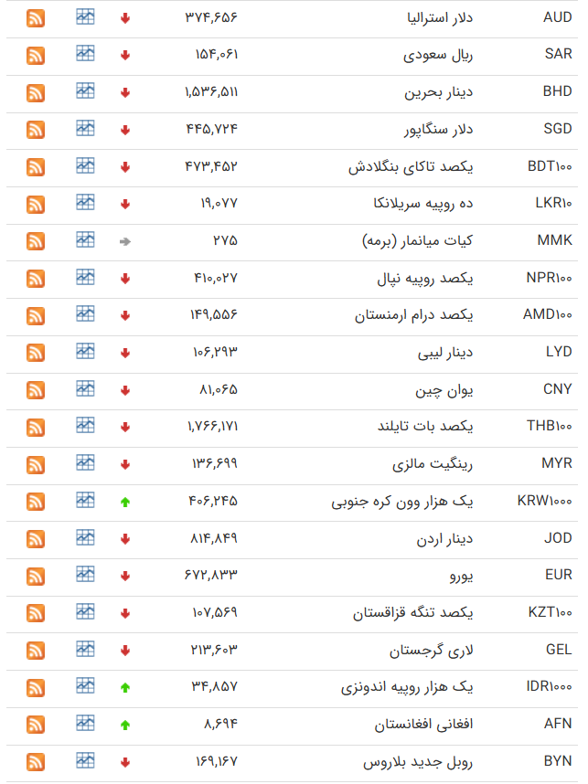 از سوی دیگر، اسکناس درهم امارات نیز با کاهش نسبت به روز کاری گذشته، 19 هزار و 737 تومان ارزشگذاری شده است و نرخ حواله درهم نیز 19 هزار و 163 تومان است.