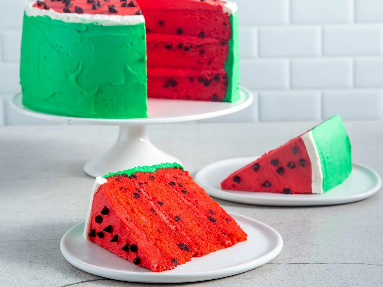 طعم و حس و حال یلدایی: این کیک با رنگهای قرمز، سفید و سبز خود، تداعیکننده هندوانه و حالوهوای یلداست و شیرینی این شب را دوچندان میکند.