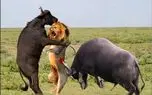 ویدیویی از نبرد گاو نر با شیرها و مشاهده می کنید که سهمگین و خونین تمام شد
