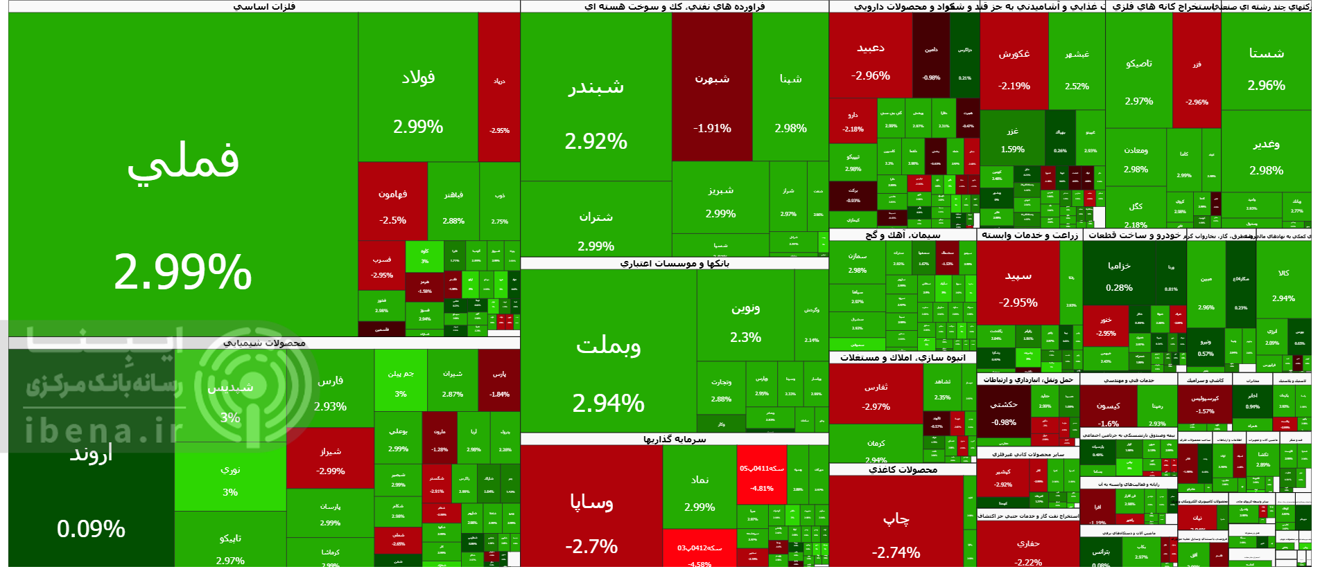 در این روز نمادهای فارس، فملی، فولاد و پارسان بیشترین تاثیر مثبت را بر شاخص کل بازار سرمایه داشتند و عامل رشد بازار سرمایه شدند.