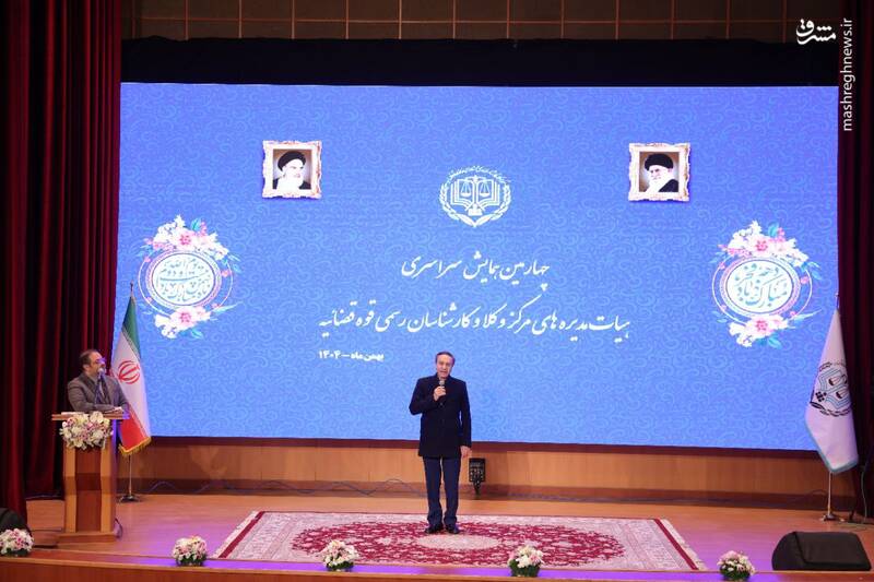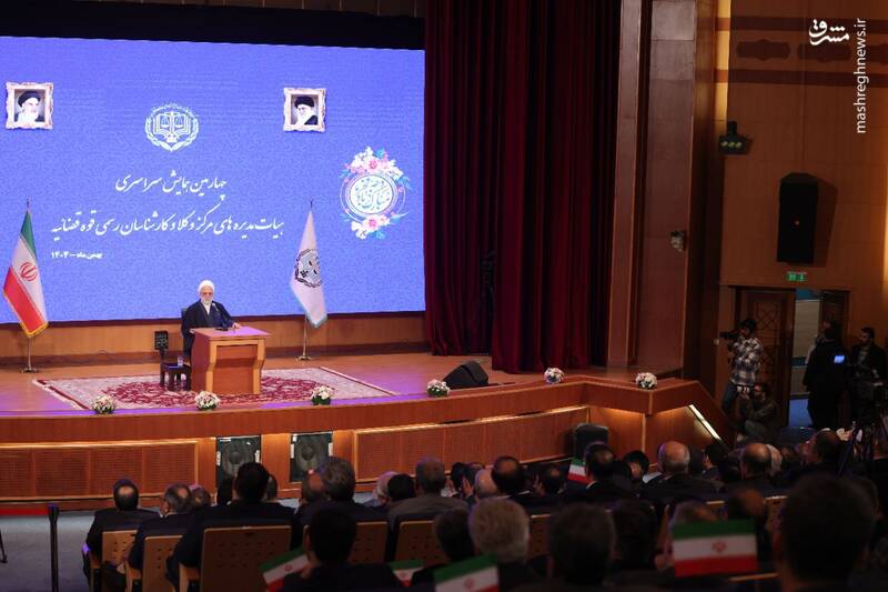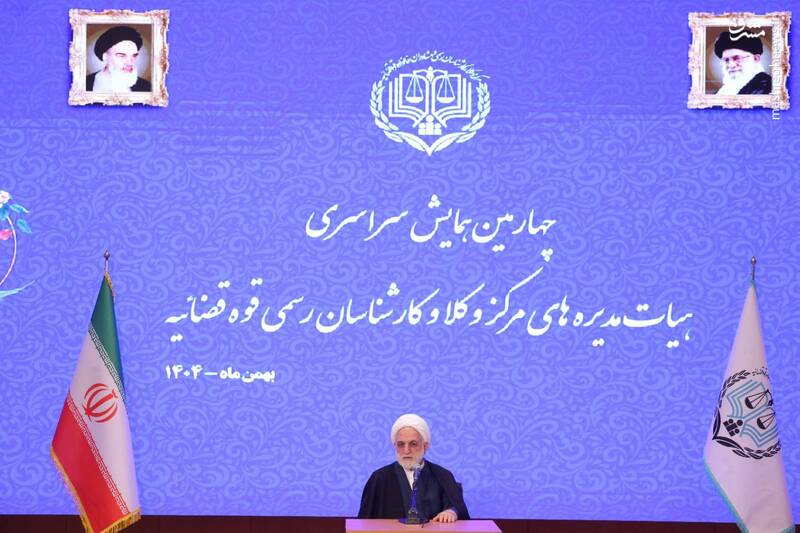 به گزارش مشرق، چهارمین همایش سالانه مرکز وکلای قوه قضاییه سهشنبه ۲۱ بهمن ۱۴۰۴ با حضور «غلامحسین محسنی اژهای» رئیس قوه قضاییه، رئیس مرکز وکلای قوه قضاییه و جمعی از مقامات قضایی و وکلای دادگستری در مجتمع شهید بهشتی برگزار شد.