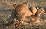 شیری که بچه آهویی که از ترس کفتارها بهش پناه آورده بود رو نخورد و نگذاشت کفتارها هم اذیتش کنن