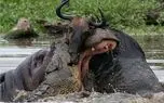 تمساح با آرواره هایی قوی که دارد میتواند هر چیزی را از پای در آورد اما اینبار هدف بوفالوی رهگذر بود.