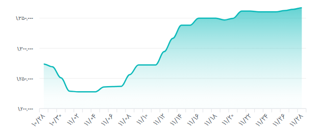 نمودار زیر تغییرات روزانه قیمت حواله دلار را در یک ماه گذشته بر حسب ریال نشان میدهد.
